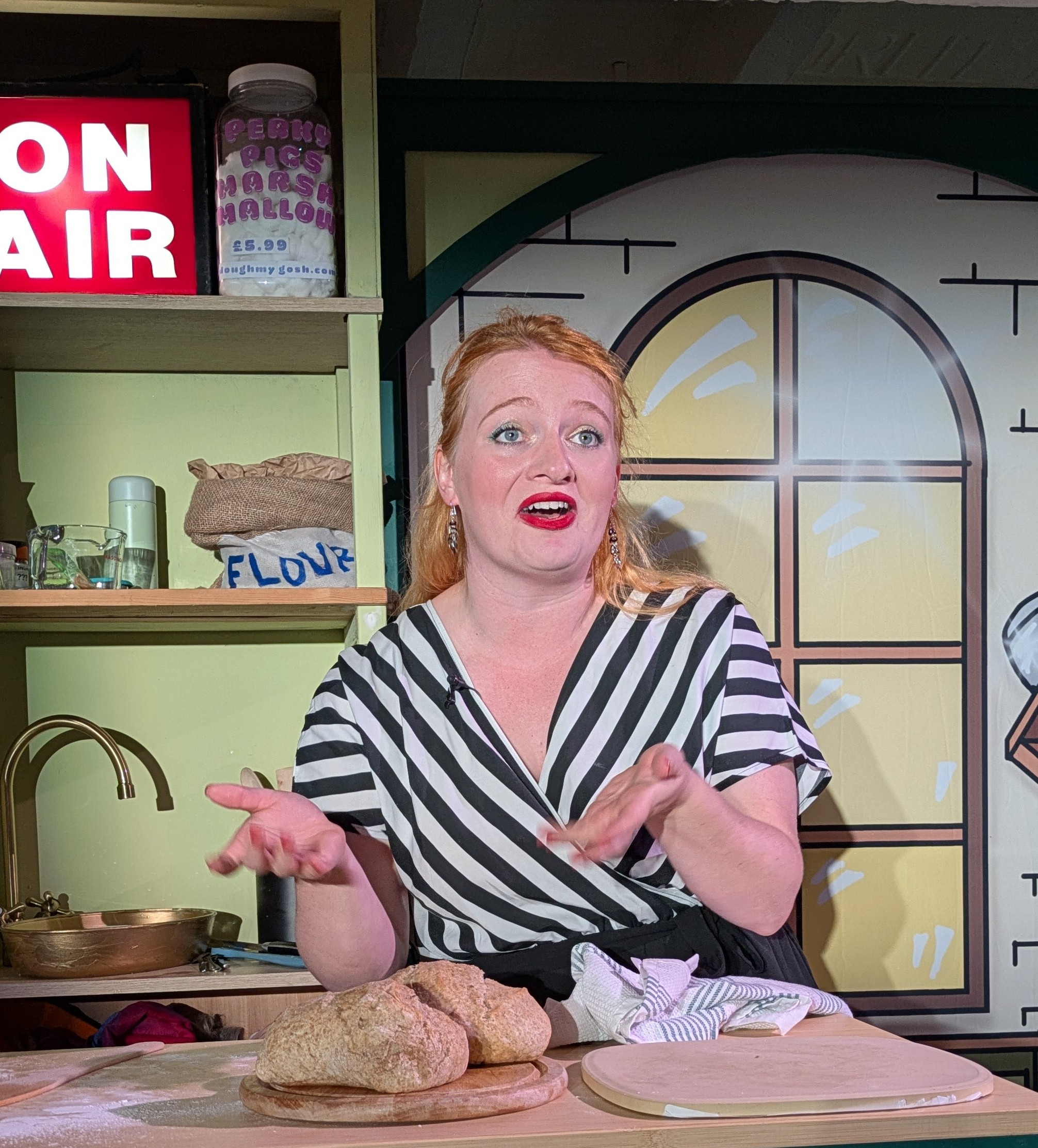 “Superb. Utterly superb!” “Comic talent & apparently unlimited enthusiastic energy!” “Love the smell of baking bread!” Badapple Theatre’s new one-person comedy ‘Crumbs’ comes to York Theatre Royal studio May 20-23 (mix of matinées & evening performances). Brace for an upbeat evening, costume changes & live baking on stage on a working oven for the audience to taste at the end! ‘Crumbs’ follows the exploits of ex-TV baking show host Petronella Parfait who is trying to revive her career - only she has a somewhat flexible relationship with the truth! Tickets tel: 01904 623568 or https://www.yorktheatreroyal.co.uk/show/crumbs/ or www.badappletheatre.co.uk