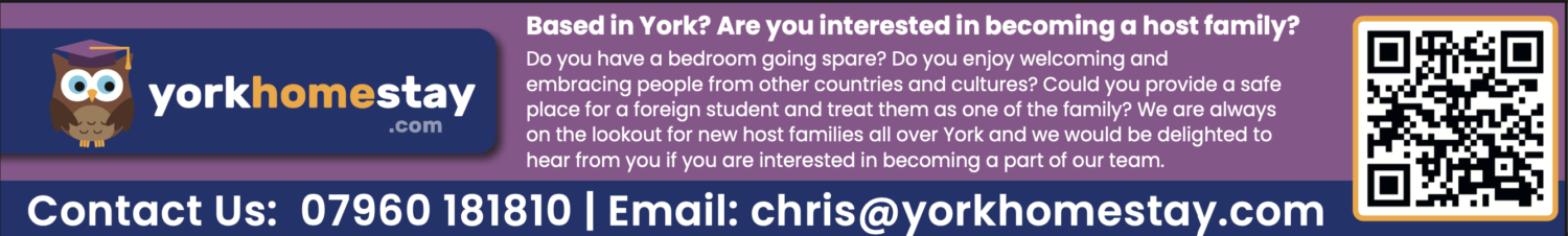 Based in York and have a spare bedroom? Enjoy meeting people from different cultures? We’re always looking for welcoming host families to provide a safe, supportive home for international students and treat them as part of the family. If you’re interested in becoming a host, we’d love to hear from you.