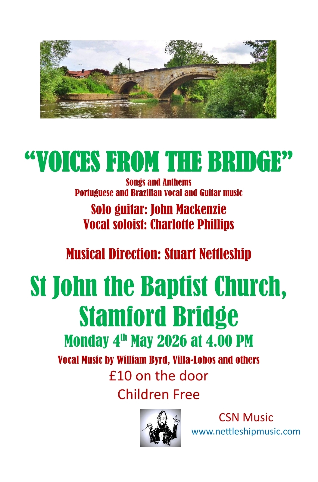 Hello! We are holding an afternoon concert on Bank Holiday Monday, 4th May at 4pm. Adults and children welcome, and the sale of tickets will help to raise funds for St John's Bells Appeal at the church in Stamford Bridge.