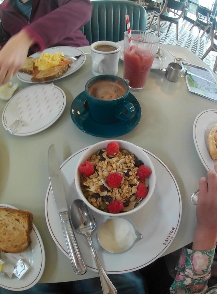 The staff are really friendly and helpful. Mollie’s unhurried breakfasts (served from 6.30am to noon) are fabulous, memorable events. House granola with coconut yoghurt and berries is followed by scrambled egg and smoked salmon on sourdough toast, accompanied by a berry smoothie and hot chocolate for my wife and I. The children prefer a more American theme and opt for banana bread and berries, followed by waffles with banana and maple syrup. It certainly sets you up for the day. It’s good to see that even Henry is confident enough to give the waiter his order.